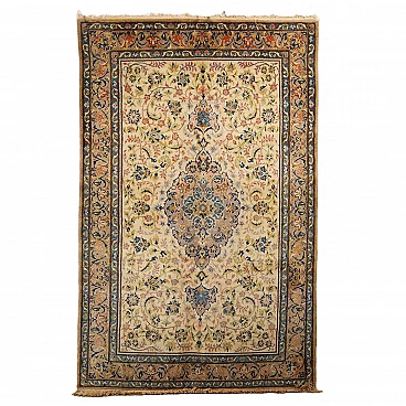 Iranian Keshan cotton and wool rug with thick knot. Handmade in the 20th century.