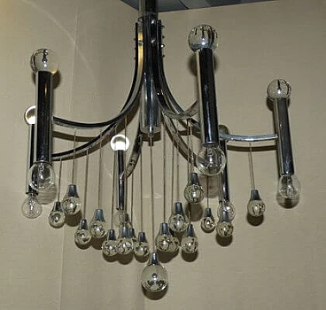 Chromed steel and crystal chandelier by Gaetano Sciolari, 1970s