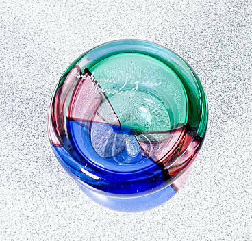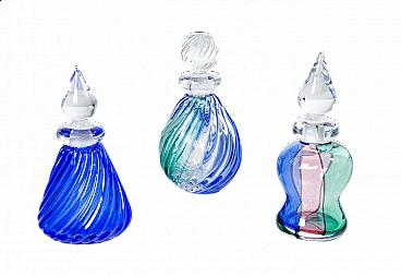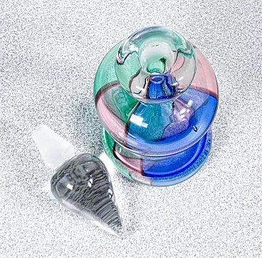 Three polychrome blown Murano glass jars signed Archimede Seguso. Murano, 1940s/'50s. Archimede Seguso (Murano, 1909 - 1999) was an Italian entrepreneur and master glassmaker. Archimede Seguso was one of the best known Venetian glassmakers, distinguishing himself in the working of heavy glass. He started working immediately becoming a master at the age of 17 in the furnace where his father was a partner, which was transformed in 1933 from Soffieria Barovier Seguso & Ferro into Seguso Vetri d'Arte, a company that marked the development of glass in the following decades. The artist Flavio Poli collaborated with great importance as artistic director. These collaborations ceased in 1946 when Archimede Seguso founded the Vetreria Artistica Archimede Seguso... He passed away in 1999 leaving many of his works, as well as an indelible sign of his creativity, in many contemporary art museums around the world. Dimensions H 13.5 cm / Ø 7.5 cm; H 14.5 cm / Ø 5.5 cm; H 14 cm / Ø 7.5 cm. Excellent condition, no cracks or chips. Please evaluate by means of the enclosed photos.