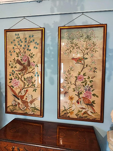 Pair of chinoiserie panels painted tempera on paper, 18th century
