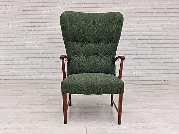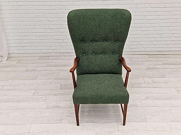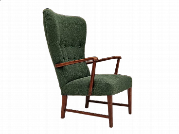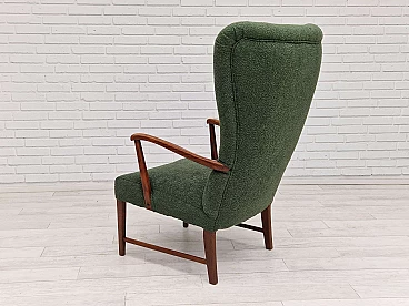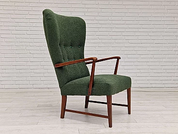 Danish high-backed armchair in stained oak and bottle-green fabric, 1960s