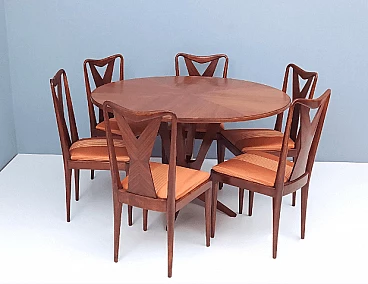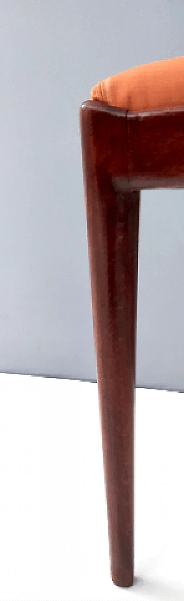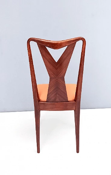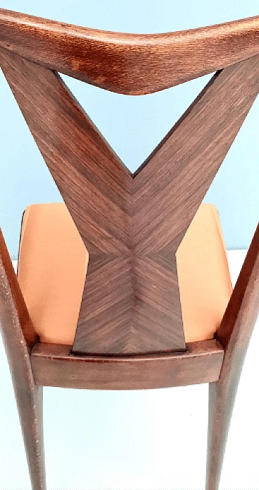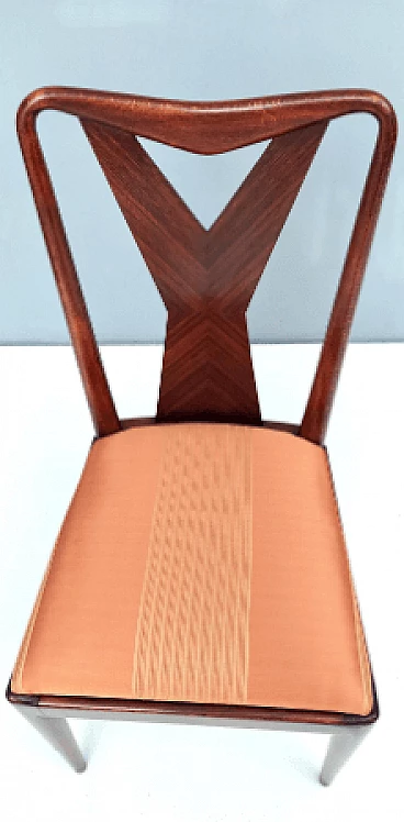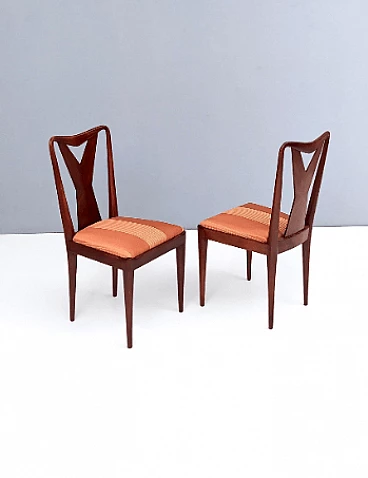 6 Chairs in walnut and orange satin in the style of Ico Parisi, 1950s