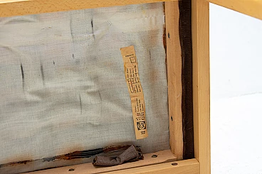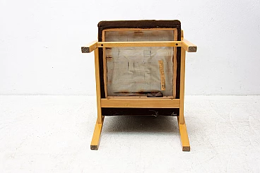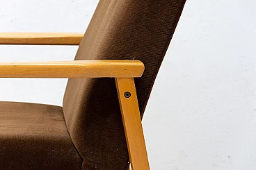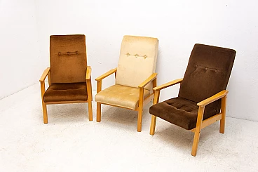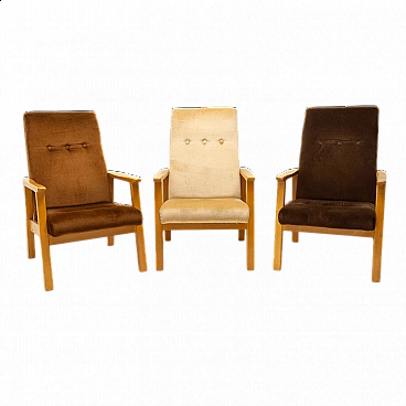 3 Armchairs in beech and brown fabric, 1980s