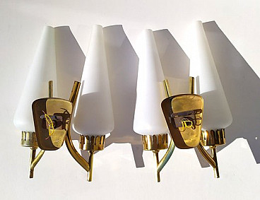 Pair of brass and glass wall lights by Angelo Lelli for Arredoluce, 1950s