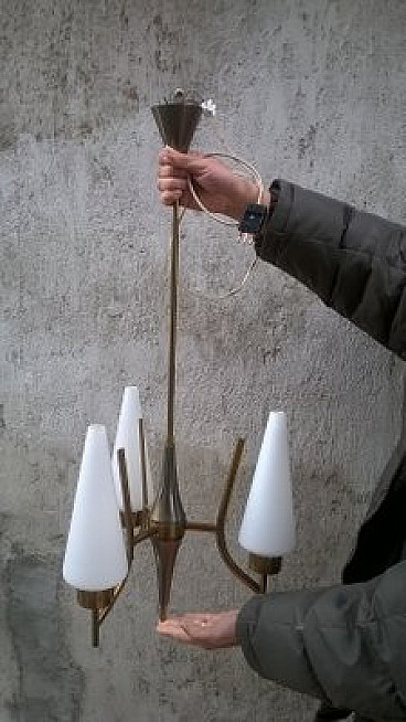 Brass and glass chandelier by Angelo Lelli for Arredoluce, 1950s