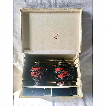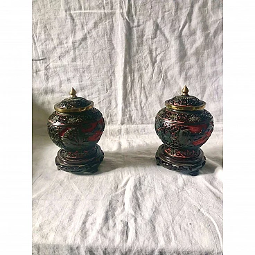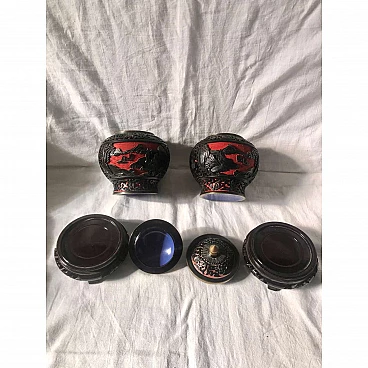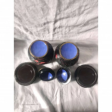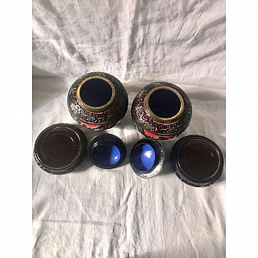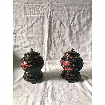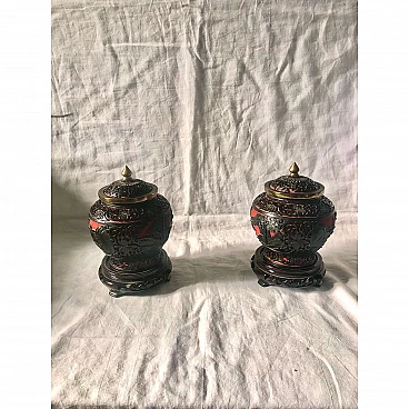 Pair of black and red cloisonné Chinese ginger vases, 1920s