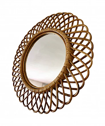 Wicker round wall mirror for Bonacina, 1960s