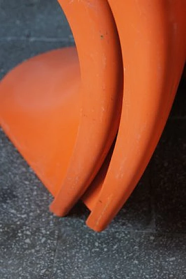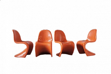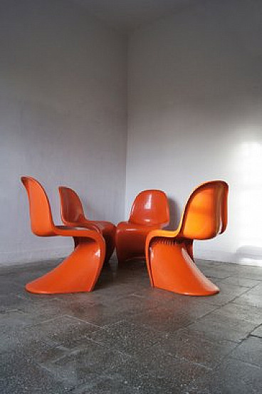 This Panton chair was produced by Verner Panton for Herman Miller in 1971 and is made of plastic in the shape of an S. Panton designed the first ever chair consisting of a single element, made of plastic, available in different colours. The S chair has become Panton's best known and most produced design. He created innovative and futuristic designs using numerous materials (mainly plastic) and bright colours. His style was well established in the 1960s, but made a comeback at the end of the 20th century. Panton contributed to the development of new, elegant styles that reflected the 'space age' of the 1960s, which became known as Pop Art. Today, the chairs are part of the permanent collections of some of the world's most famous museums, including the Museum of Modern Art in New York, the Design Museum in London, the German Historical Museum in Berlin and the Danish Museum of Art and Design in Copenhagen. The chair comes from the third production version, launched in the early 1970s, which used coloured materials in the mass. They are preserved in their original condition, without damage; minor scratches and abrasions are present.