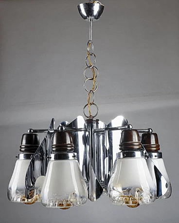 Blown glass, steel and wood chandelier by Mazzega, 1970s