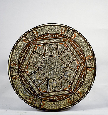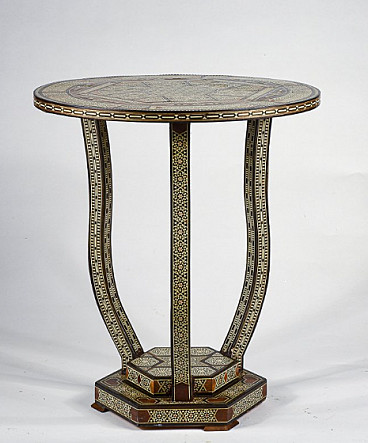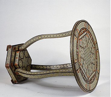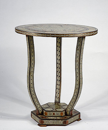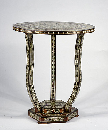 Small wooden table inlaid with mother-of-pearl in Bugattian style, mid-20th century