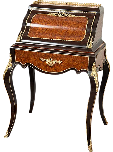 Secretaire in solid walnut and walnut veneer. Restored and with certificate of authenticity.