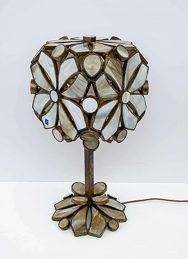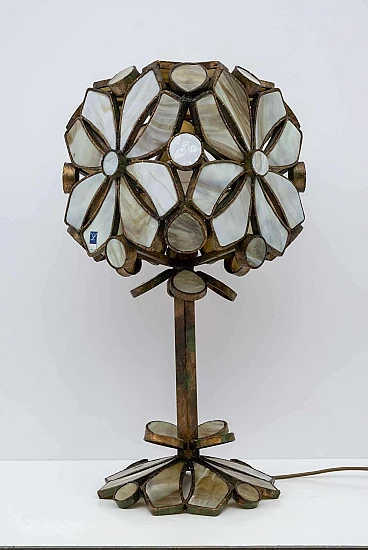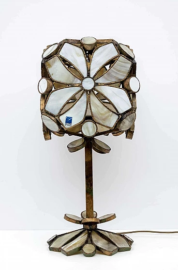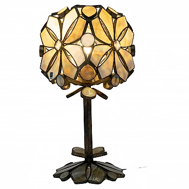 Brutalist table lamp in glass paste and wrought iron by Longobardi, 1970s