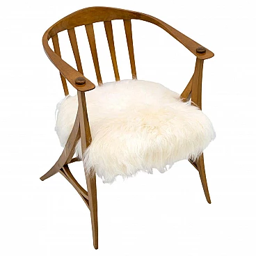 This is a vintage Italian armchair. The beauty of the curve and its finesse are characteristics of mid-century Italian design, including design detail and quality. It is a work of great value, the upholstery is sheepskin.