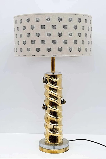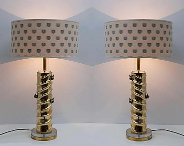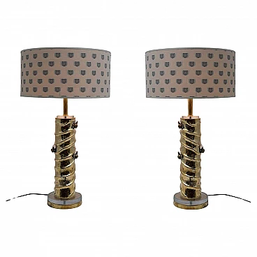 Pair of cast brass and Murano glass table lamps with Gucci fabric, 2000s