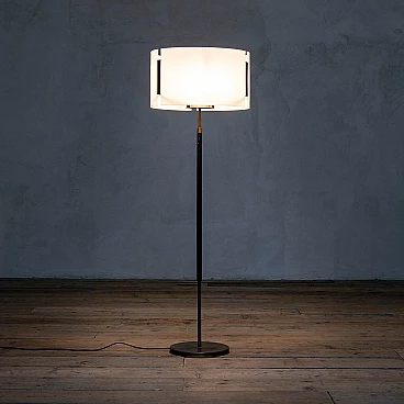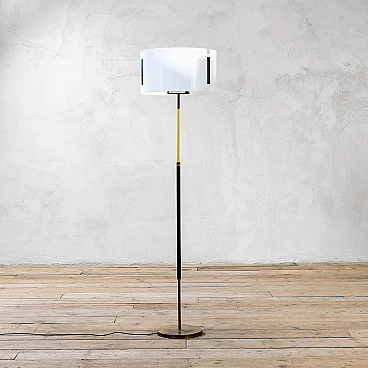 Floor lamp with brass frame and plexi diffuser by Giuseppe Ostuni for Oluce, 1950s