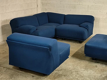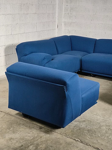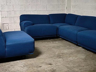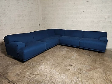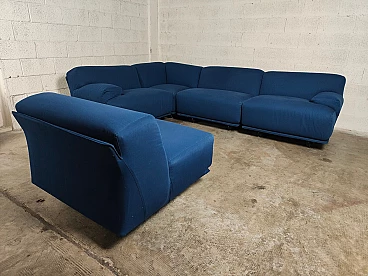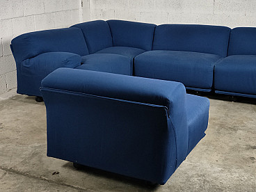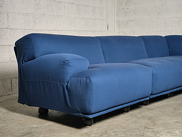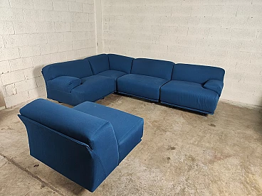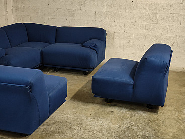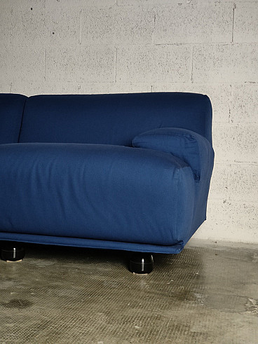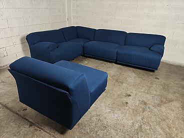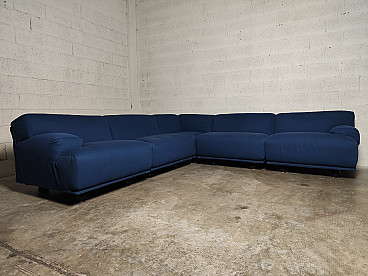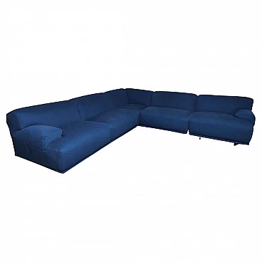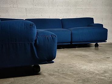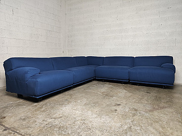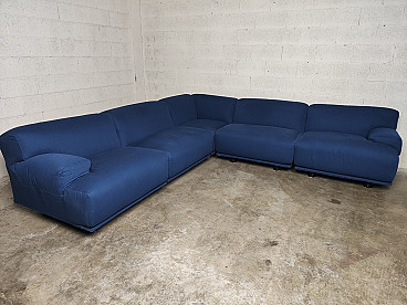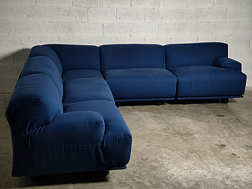 Fiandra modular sofa by Vico Magistretti for Cassina, 1970s. The configuration of the sofa is modular and therefore the actual measurements depend on the desired composition. Fiandra is a design by Vico Magistretti put into production by Cassina in 1975, seating elements with simple lines and whose name evokes the "flat countryside", its solid companies and its precious fabrics, transferring the idea of solidity in the comfort of the seats and the preciousness in the variety of the covers ranging from classic canvas to leather, wool and velvet. The armchair, like the sofas, is composed of modular elements which, fixed together by means of a metal bracket screwed under the base, make up linear and angular configurations. The basic elements, armchairs with or without armrests (right or left) are available in two widths, while only the armchair with two armrests and the matching ottoman cannot be attached to the other elements. The upholstery of the feather cushions, fixed with zips, is removable. Cassina Spa is an Italian company operating in the contemporary furniture sector, founded in 1927 in Meda by Cesare and Umberto Cassina. In the 1950s Cassina switched from handcrafted to serial production, adopting the logic of industrial design. This change was also prompted by the commissioning of furniture for the interiors of large cruise ships. During this period some of the company's best known products took shape: the 646 chair and the 699 chair, known as the 'Superleggera', both designed by Gio Ponti. In 1963, Vico Magistretti joined the company's design team, creating the Carimate armchair. Ludovico 'Vico' Magistretti (Milan, 6 October 1920 - Milan, 19 September 2006) was one of Italy's most important designers, architects and urban planners. His clean, essential design characterised and inspired the world of home, office and business furniture creation throughout the latter part of the 20th century.