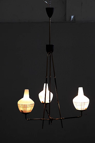 Brass chandelier with 3 lights, 50s