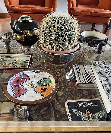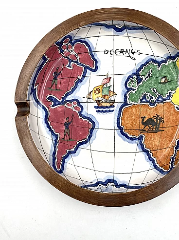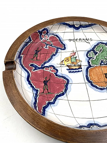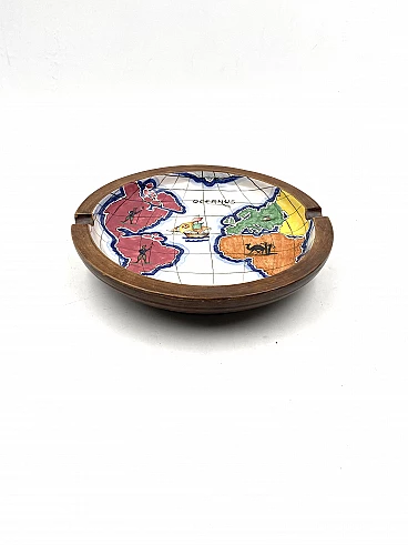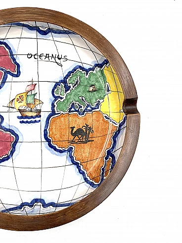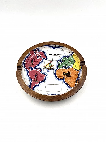 Ashtray with globe in polychrome ceramic by Zaccagnini, 1940s