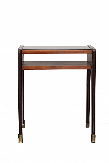 Servant table by Vittorio Dassi, the function was typing, typewriter holder. Rosewood, ebonized profiles, brass tips, burgundy glass top.