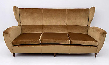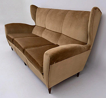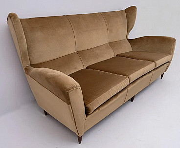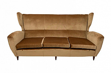 Beech and velvet sofa with high back by Gio Ponti, 1950s