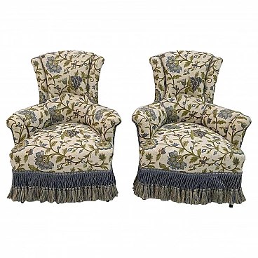 Pair of Napoleon III brocade armchairs, 19th century