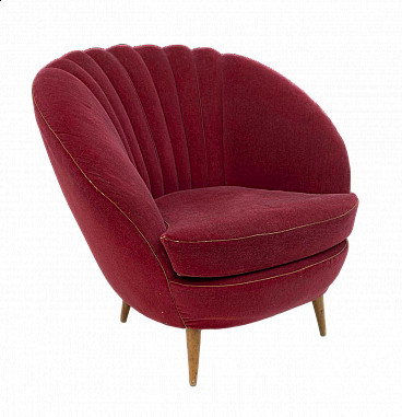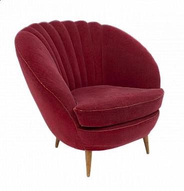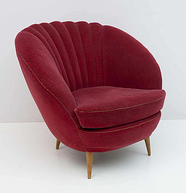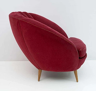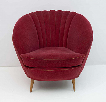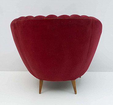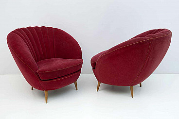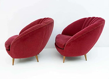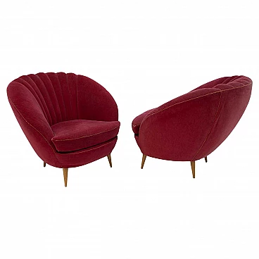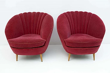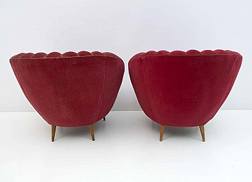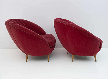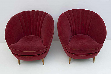 Pair of Margherita model armchairs with large, comfortable backrest, conical beechwood feet, upholstery in good condition and sprung cushions. The velvet is original of the period but new upholstery is recommended. Designed by Gio Ponti and produced by ISA-Bergamo in the 1950s, a furniture and seating manufacturer, active in Bergamo since the 1940s, a point of reference for great architects and designers of the time, the company is distinguished by its high manufacturing and craftsmanship skills.