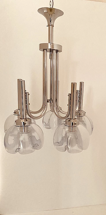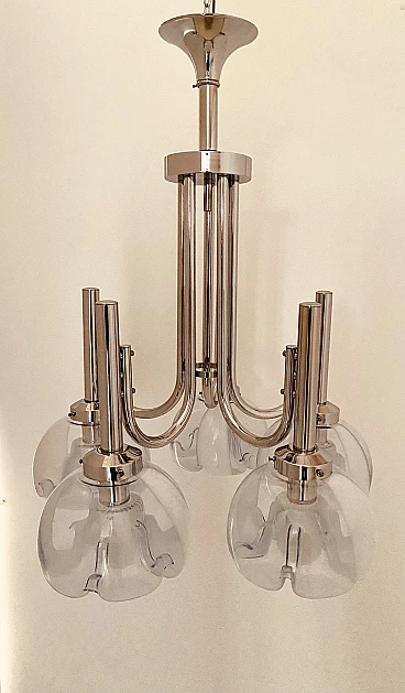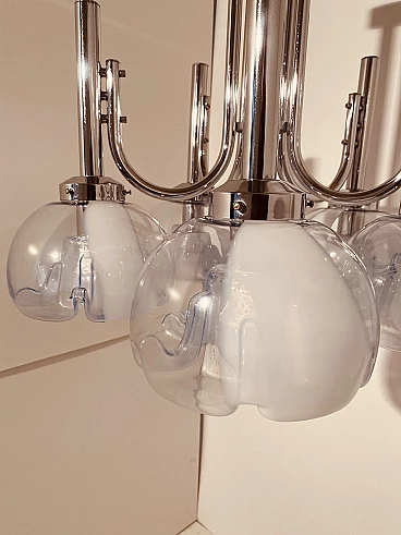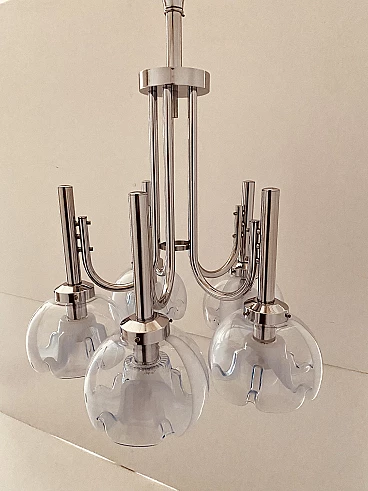 Chromed steel and Murano glass chandelier by Mazzega, 1960s