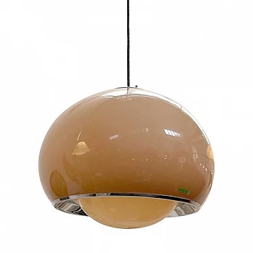 Bud hanging lamp by Guzzini, 1970s. Taupe methacrylate light diffuser with chromed details. Black wire and white plastic top cover cap (original). Lower cap rotates and can be removed to change the bulb. Adjustable height.