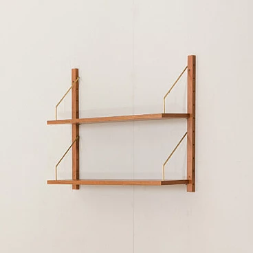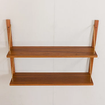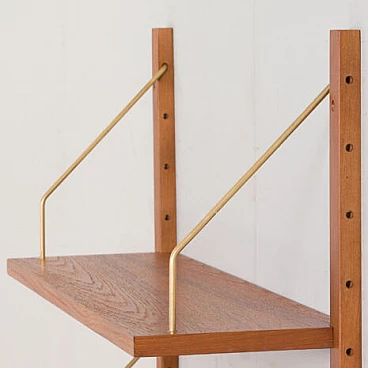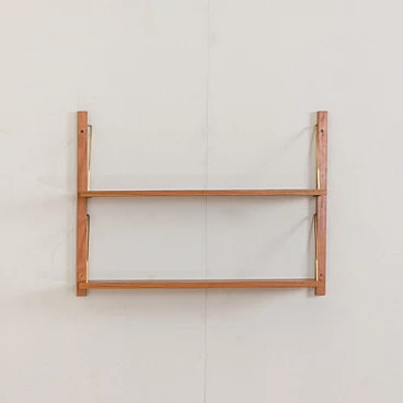 Hanging teak and brass bookcase in the style of Poul Cadovius, 1970s
