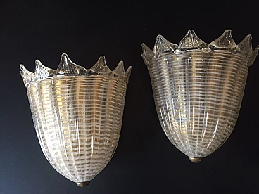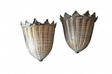Coppia di applique in pasta di vetro di Murano, realizzate negli anni '50, elementi in ottone. Pair of Mid-Century Murano glass Appliques