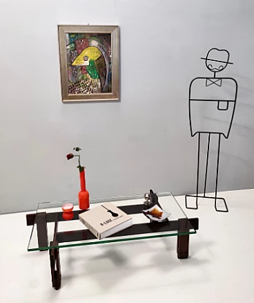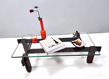Walnut coffee table with glass top attributed to Ico Parisi, 1950s
