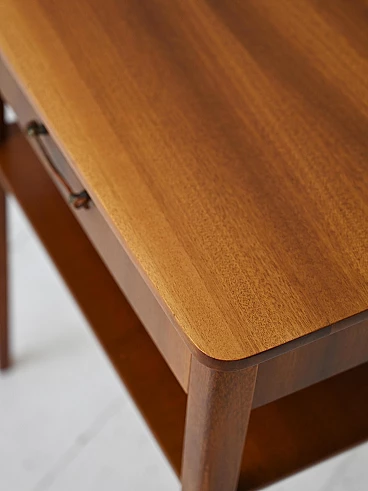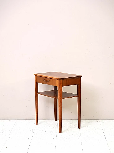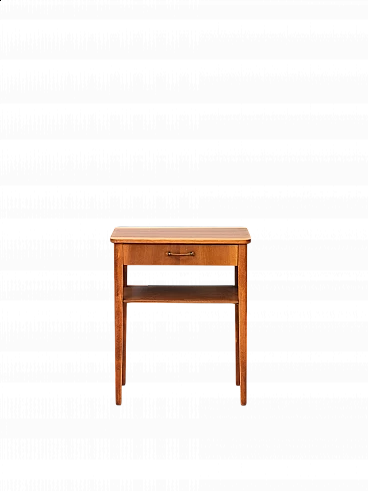 Wooden bedside table with tapered legs and rounded corners, 1960s