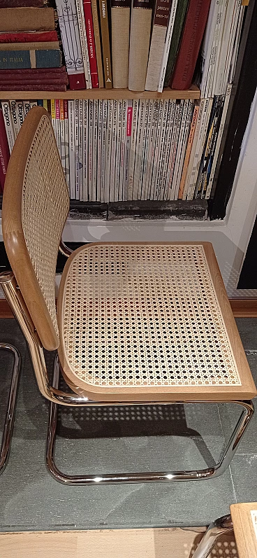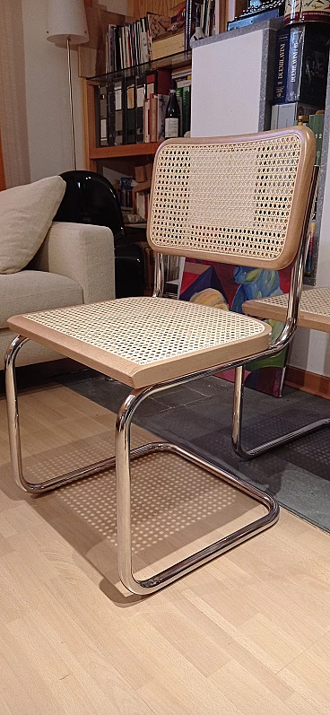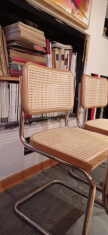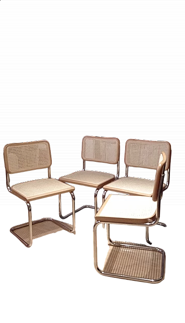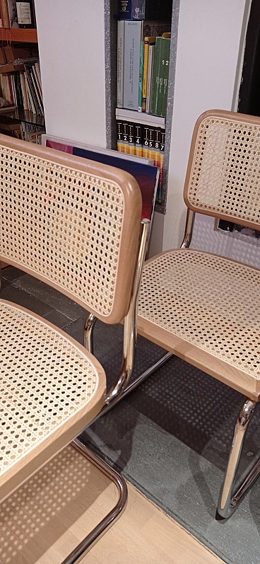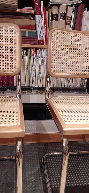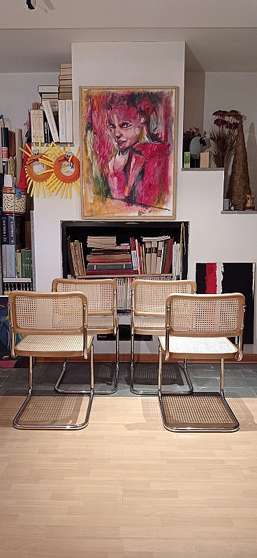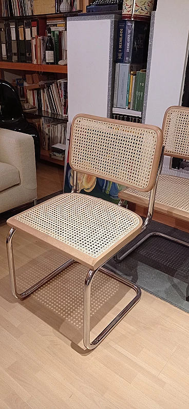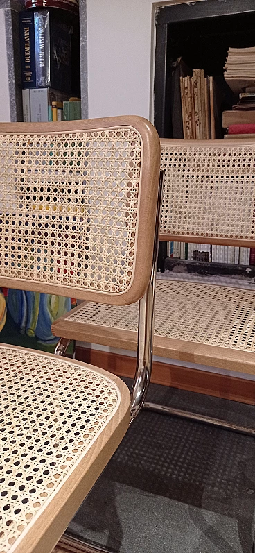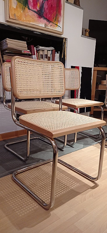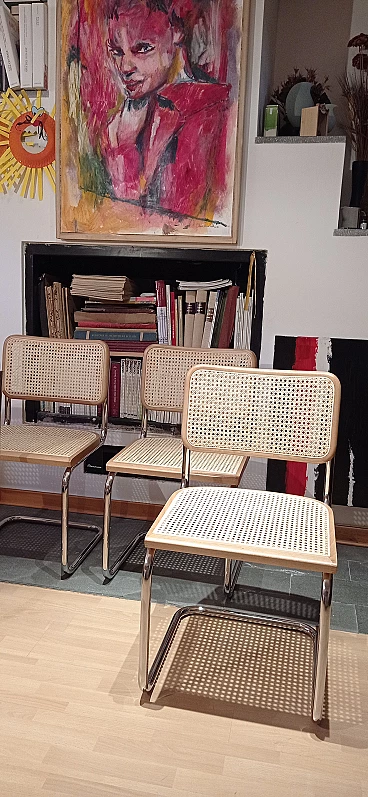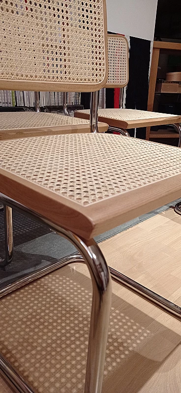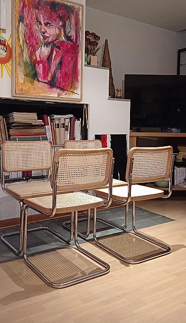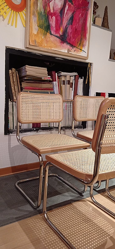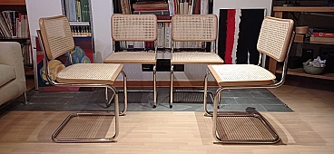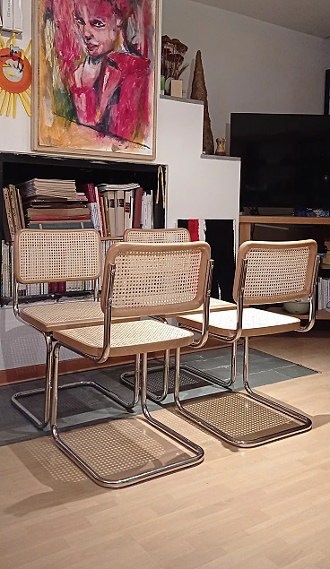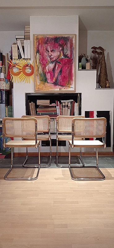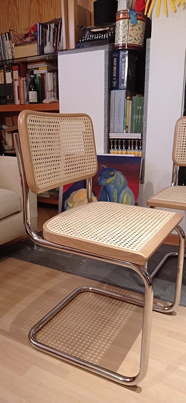 Four Cesca chairs by MDF Italia from the early 1990s by Marcel L. Breuer in steel, light brown beech wood and Vienna straw. Chromed tubular steel frame by Mannesmann. Seat and backrest frame of light beech wood and Vienna straw. Slight marks on the wood almost invisible. Chromes and straw in excellent condition. They were in the MDF ITALIA catalogue on pages 12-13, with code 1001. Beautiful, maniacally kept for display. Timeless design. Dimensions: W. 47 cm - D. 46 cm - H. 76 cm - seat H. 46 cm.