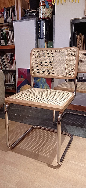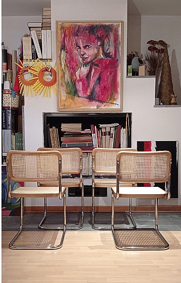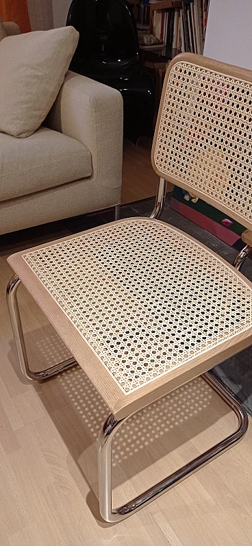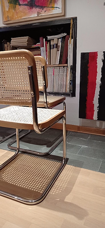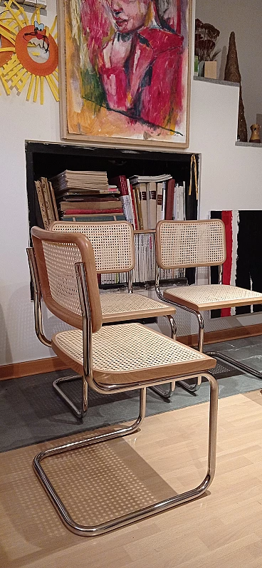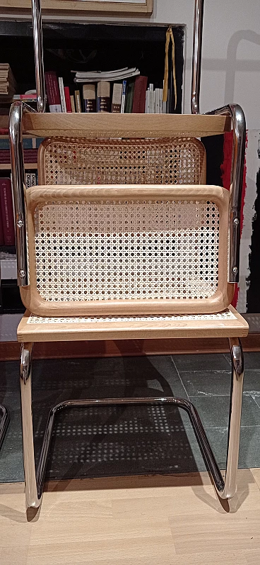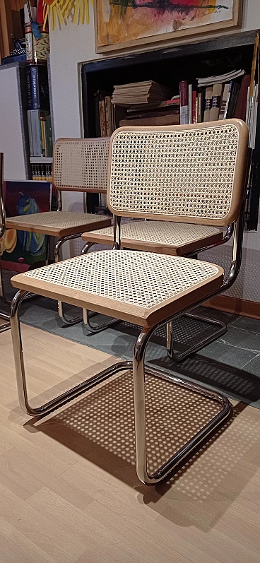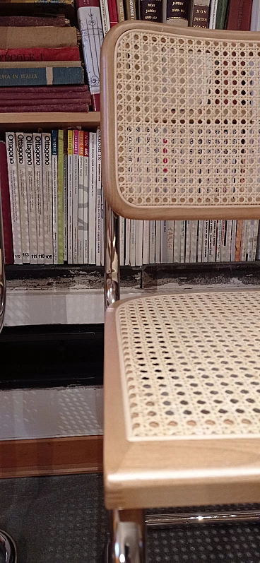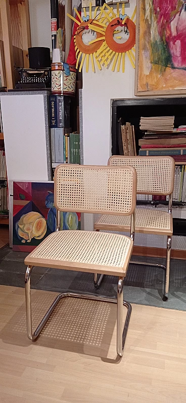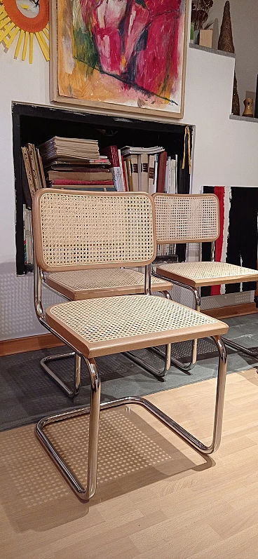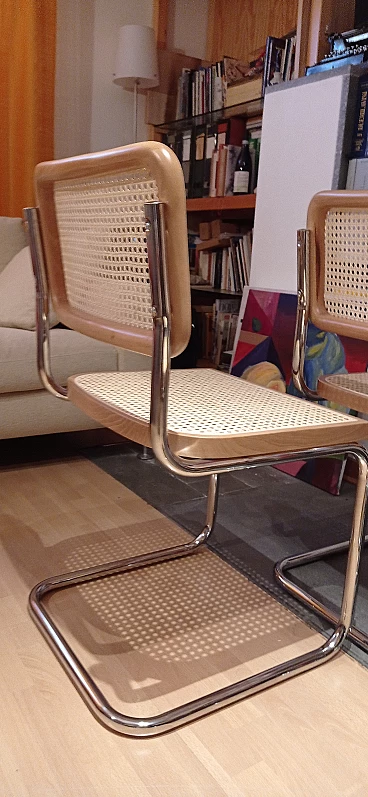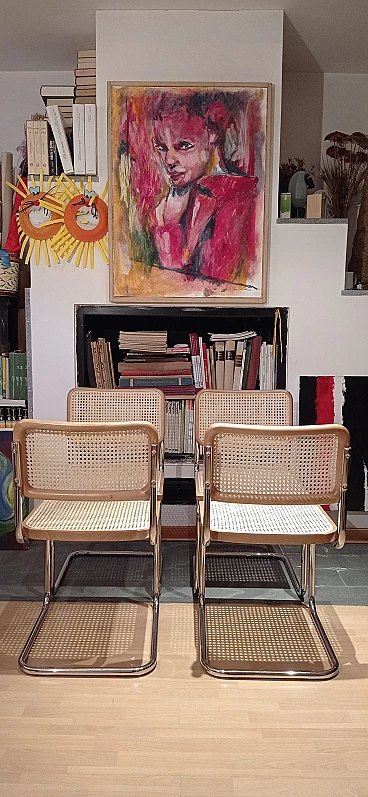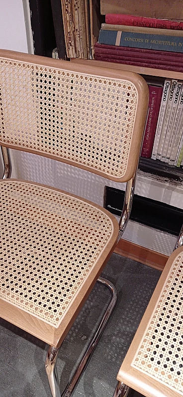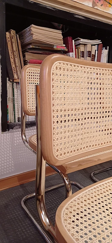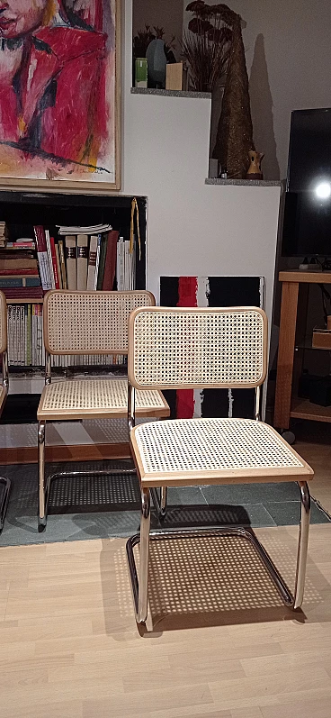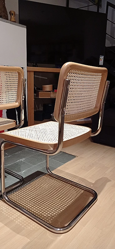 Four Cesca chairs by MDF Italia from the early 1990s by Marcel L. Breuer in steel, light brown beech wood and Vienna straw. Chromed tubular steel frame by Mannesmann. Seat and backrest frame of light beech wood and Vienna straw. Slight marks on the wood almost invisible. Chromes and straw in excellent condition. They were in the MDF ITALIA catalogue on pages 12-13, with code 1001. Beautiful, maniacally kept for display. Timeless design. Dimensions: W. 47 cm - D. 46 cm - H. 76 cm - seat H. 46 cm.