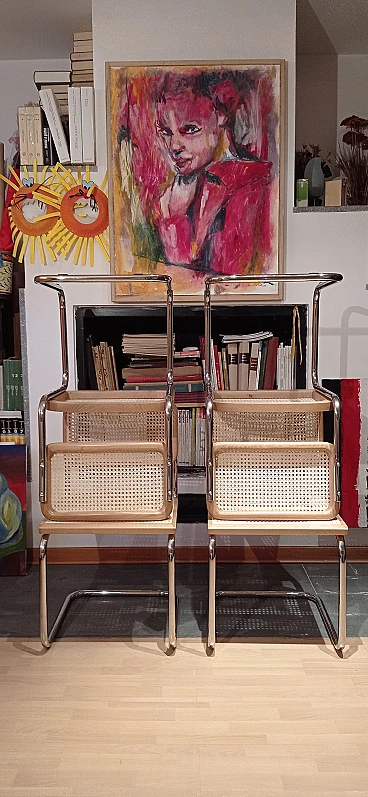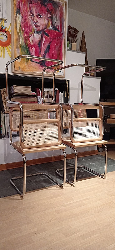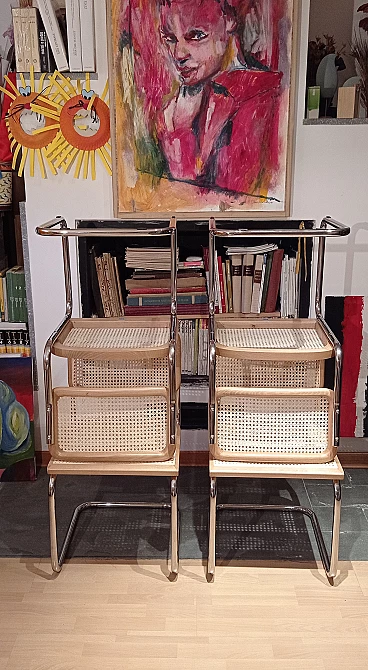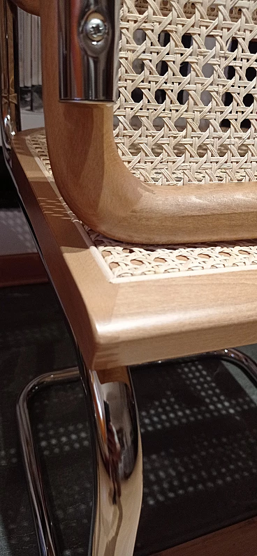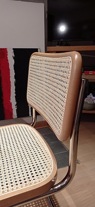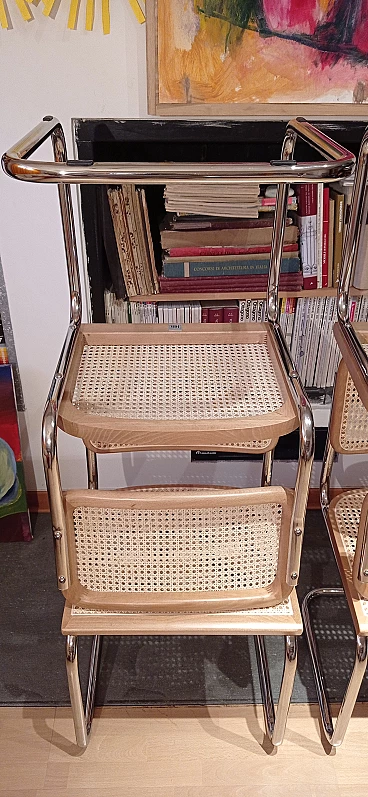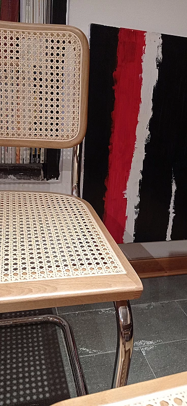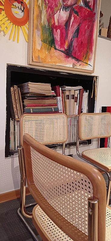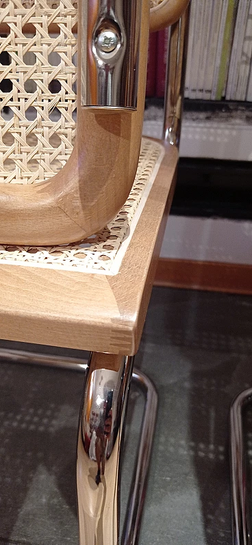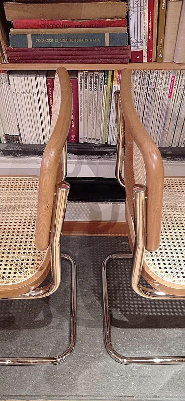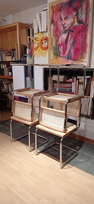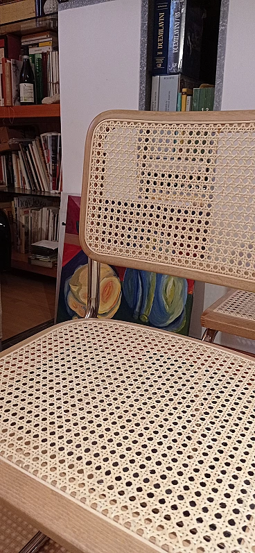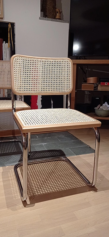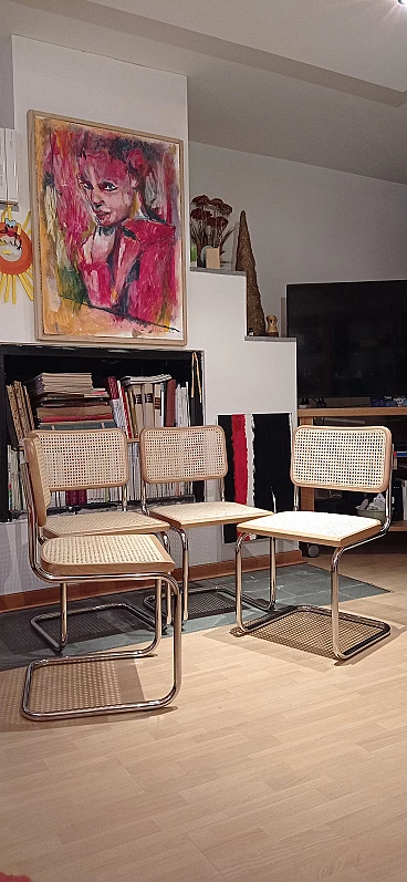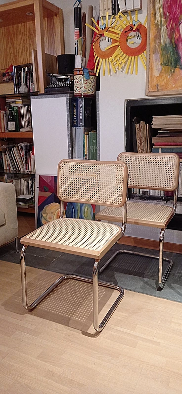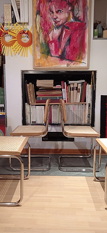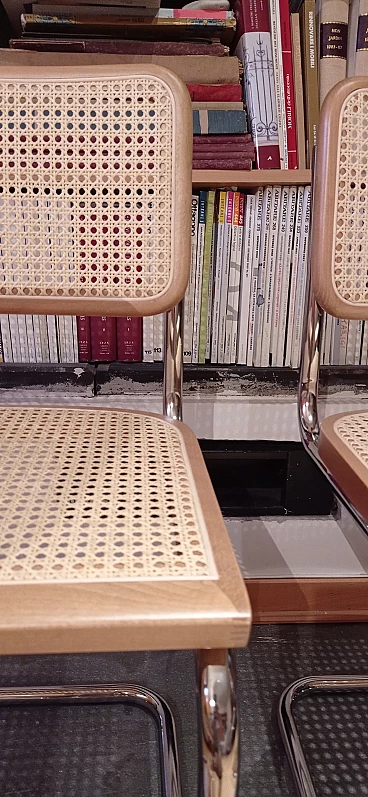 Four Cesca chairs by MDF Italia from the early 1990s by Marcel L. Breuer in steel, light brown beech wood and Vienna straw. Chromed tubular steel frame by Mannesmann. Seat and backrest frame of light beech wood and Vienna straw. Slight marks on the wood almost invisible. Chromes and straw in excellent condition. They were in the MDF ITALIA catalogue on pages 12-13, with code 1001. Beautiful, maniacally kept for display. Timeless design. Dimensions: W. 47 cm - D. 46 cm - H. 76 cm - seat H. 46 cm.