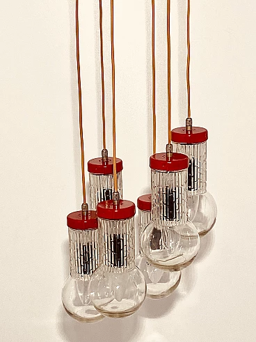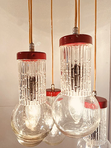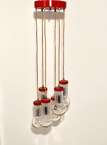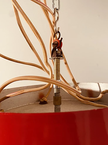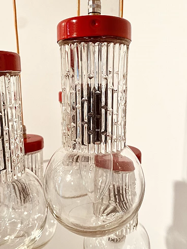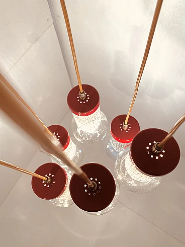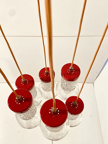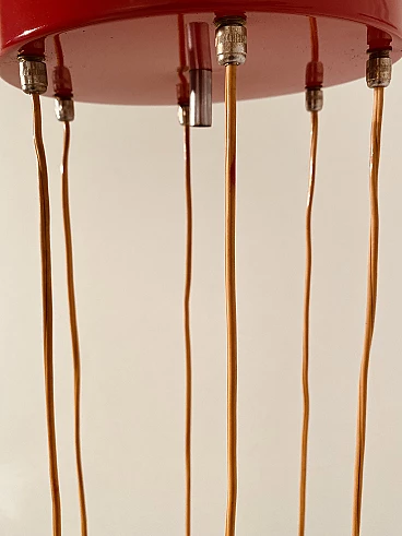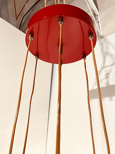 Red metal and glass chandelier in the style of Stilnovo, 1950s