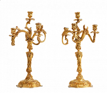 Pair of Louis XIV candelabra in gilded bronze, 18th century