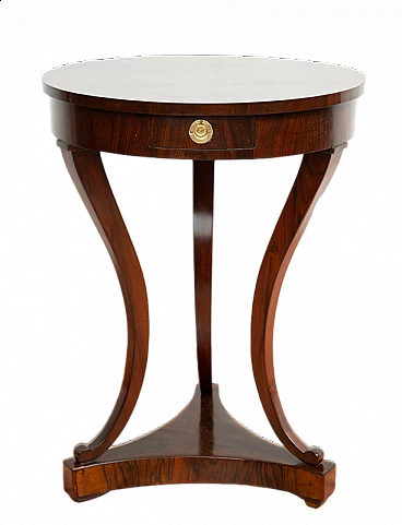 Empire round walnut coffee table with central drawer, made in Lucca in the 19th century. Restored by traditional method using shellac and alcohol.