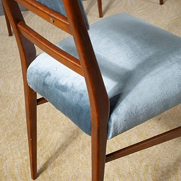 Six chairs with velvet seat and wooden frame with slender back, 1950s. Attributed to Carlo De Carli.