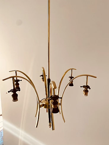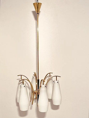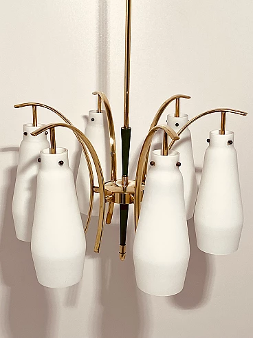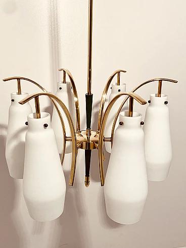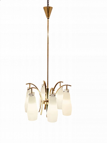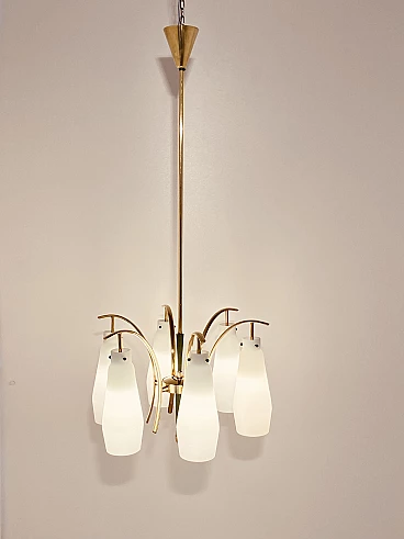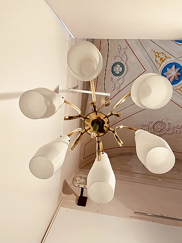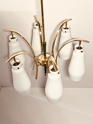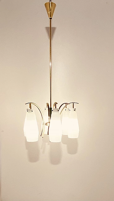 Six-light brass and opaline glass chandelier by Stilnovo, 1950s