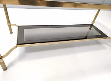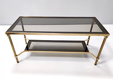 Rectangular brass coffee table with double smoked glass shelf, 1960s