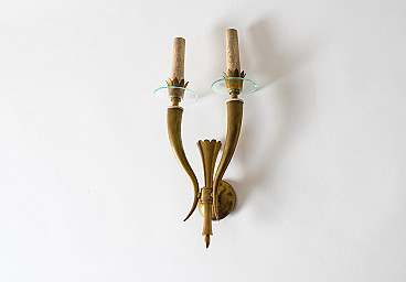 Brass and wood wall lamp by Gio Ponti and Emilio Lancia, 1950s