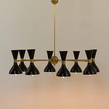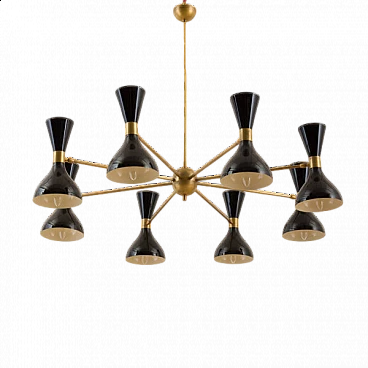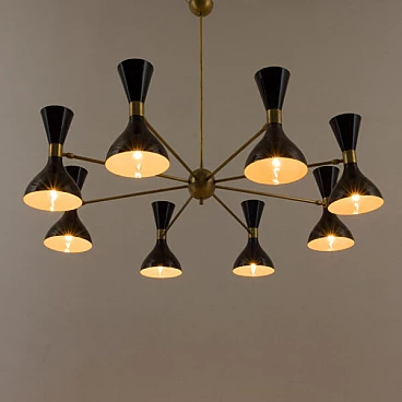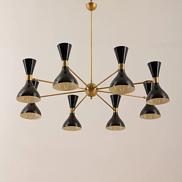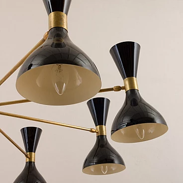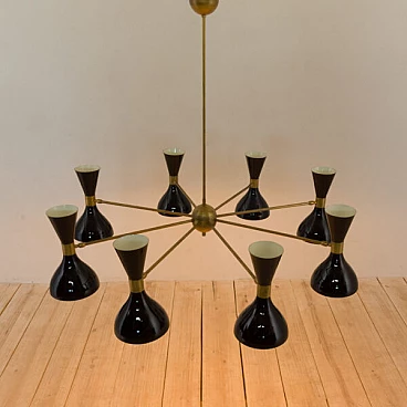 8 Arms chandelier with diabolo shades in Stilnovo style, 1970s