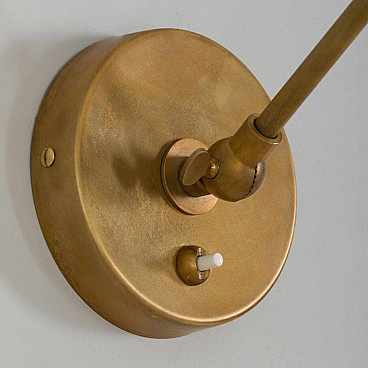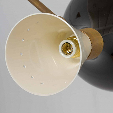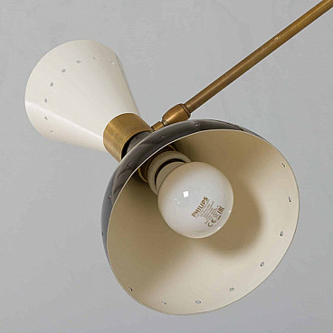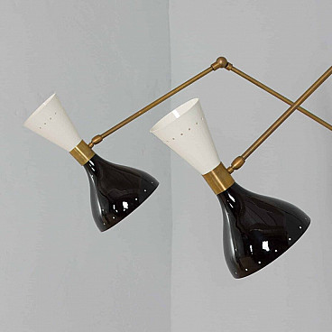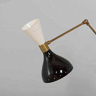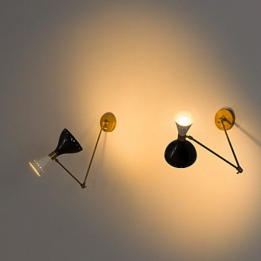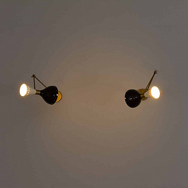 Pair of adjustable brass wall sconces with black and white lacquered lampshades, 1970s