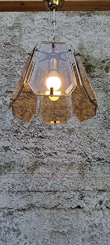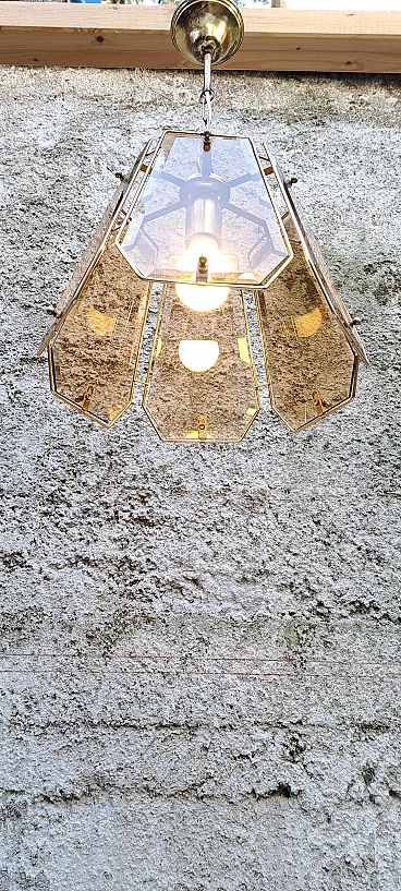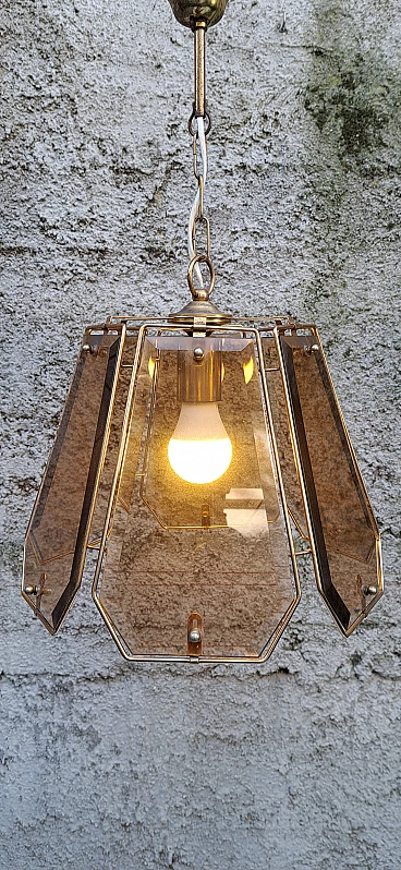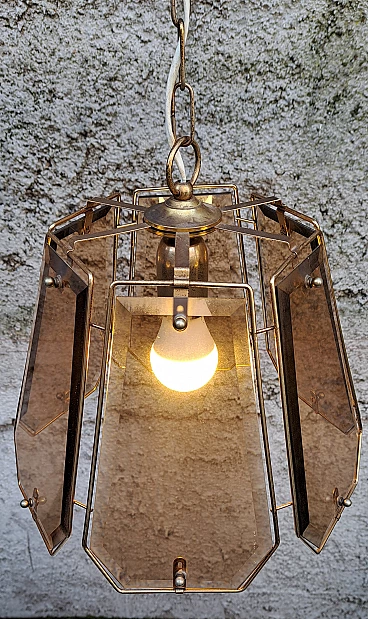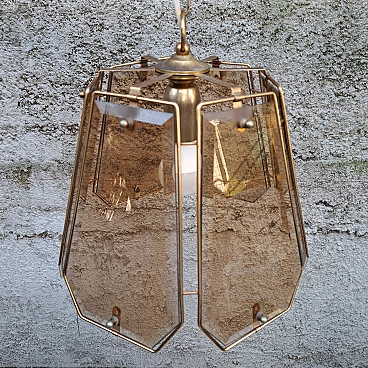 Brass and smoked glass chandelier, 1970s