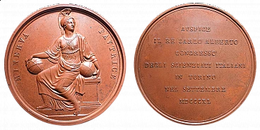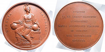 Rare bronze medal of Charles Albert, Congress of Italian Scientists in Turin, by Galeazzi Gaspare. Kingdom of Sardinia, 1840. Dimensions Ø 73 mm, weight 170 g. The piece is in very good condition, as can be seen from the enclosed photos. Please evaluate through the photos.
