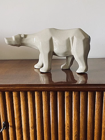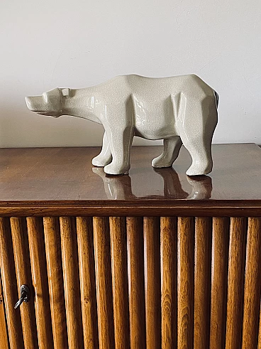 Craquelé ceramic polar bear by L&V Ceram, 1970s