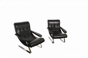 Pair of armchairs by Guido Bonzani for Tecnosalotto, 1970s. Steel structure and black leather upholstery.