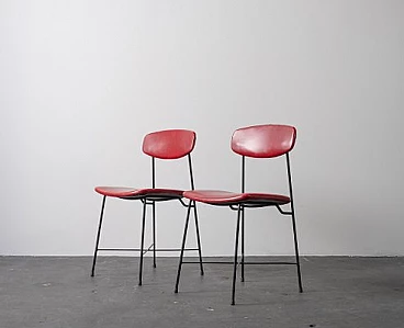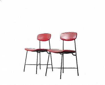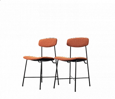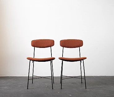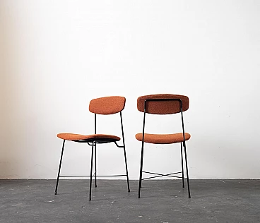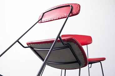 Pair of chairs by George Coslin for Faram, 1950s. Iron structure and fabric or skai upholstery, specify at time of purchase which pair you want.