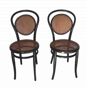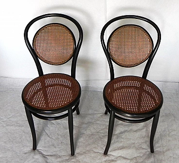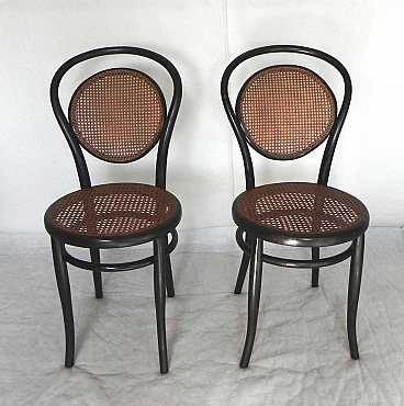 Pair of wood and Vienna straw chairs by J. & J. Kohn, 1920s